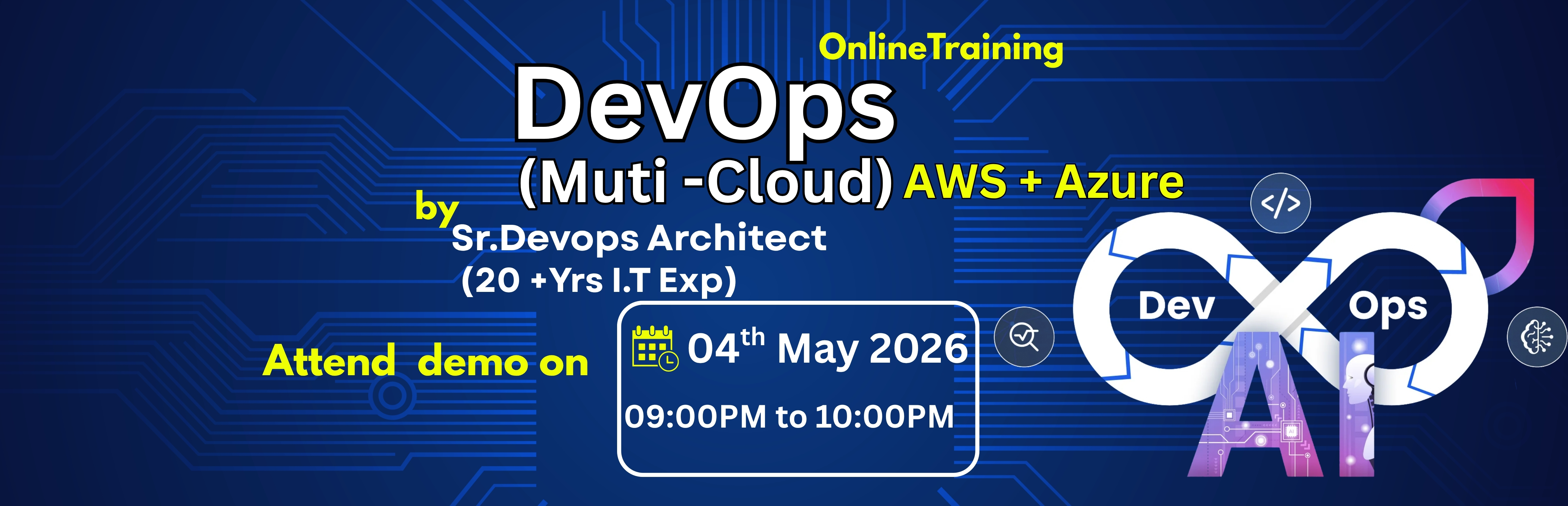 18th April 2026 | 09:00 PM to 10:00 PM | 5 Months | Mr. Prathap Sr. Devops Architect (20+Yrs I.T. Exp.) |