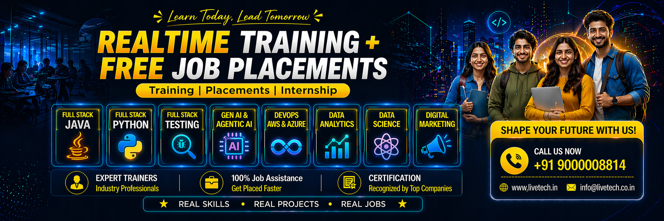 Read MoreMore than 1000 clients associated with LiveTech. LiveTech provides the placement Assistance to the students who trained under Livetech free of Cost.